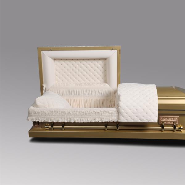 একটি: উপাদান ধাতু হয়, আমরা 20Ga, 18ga এবং 16ga সঙ্গে তামা, স্টেইনলেস স্টীল এবং ইস্পাত কাসকাট আছে।